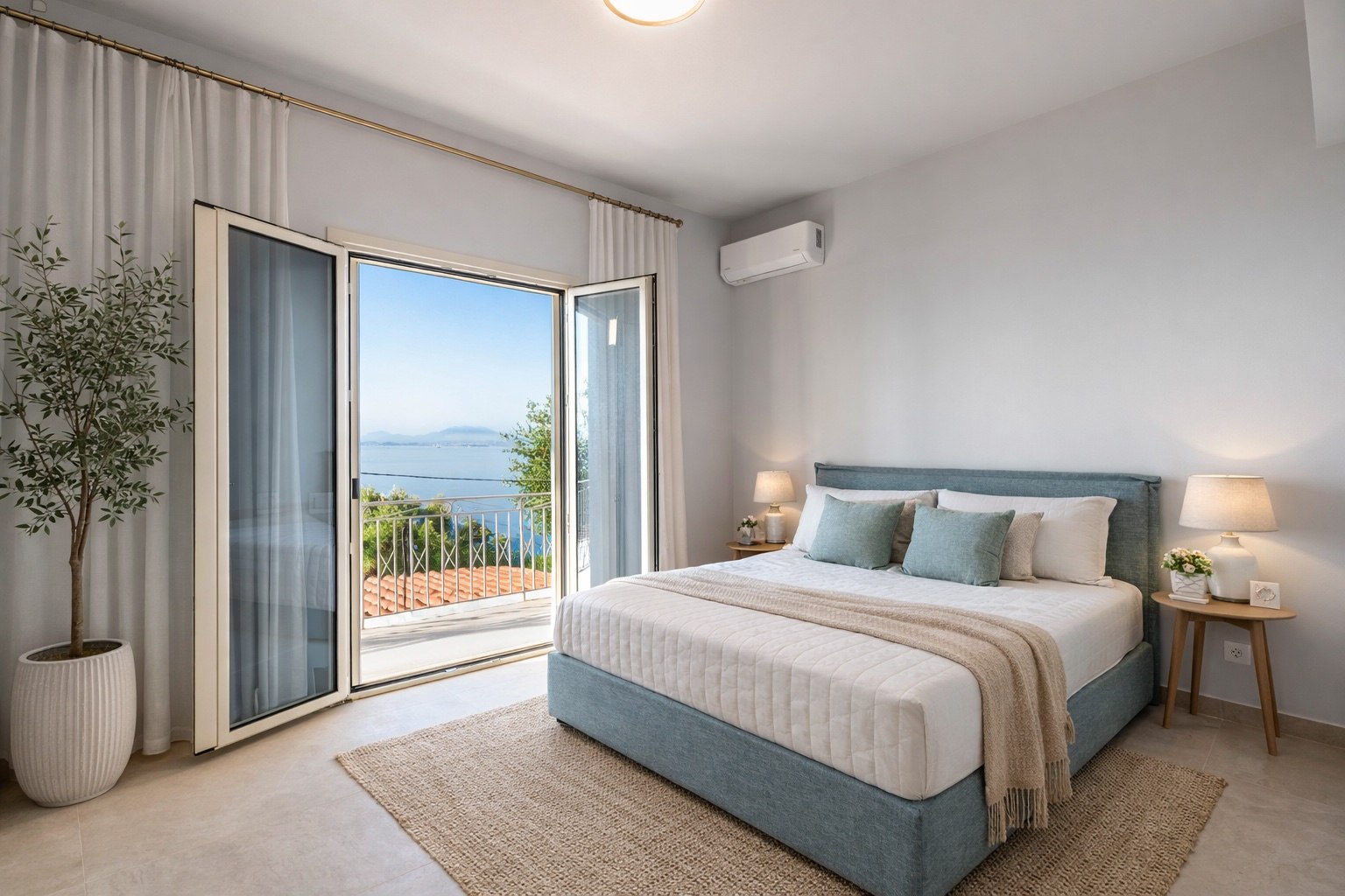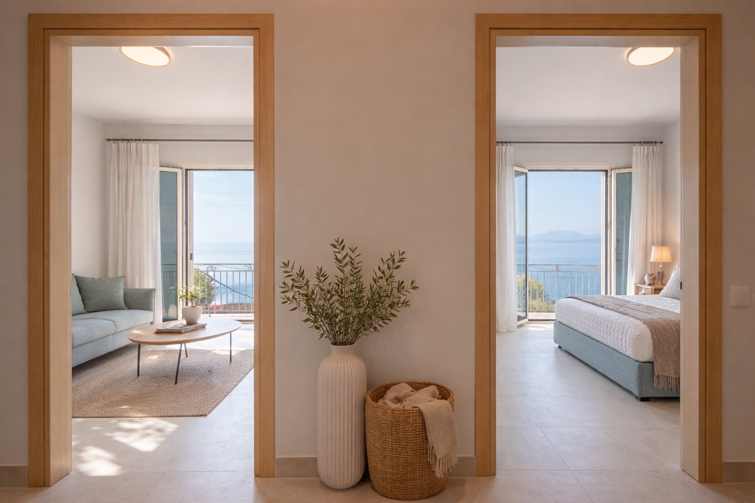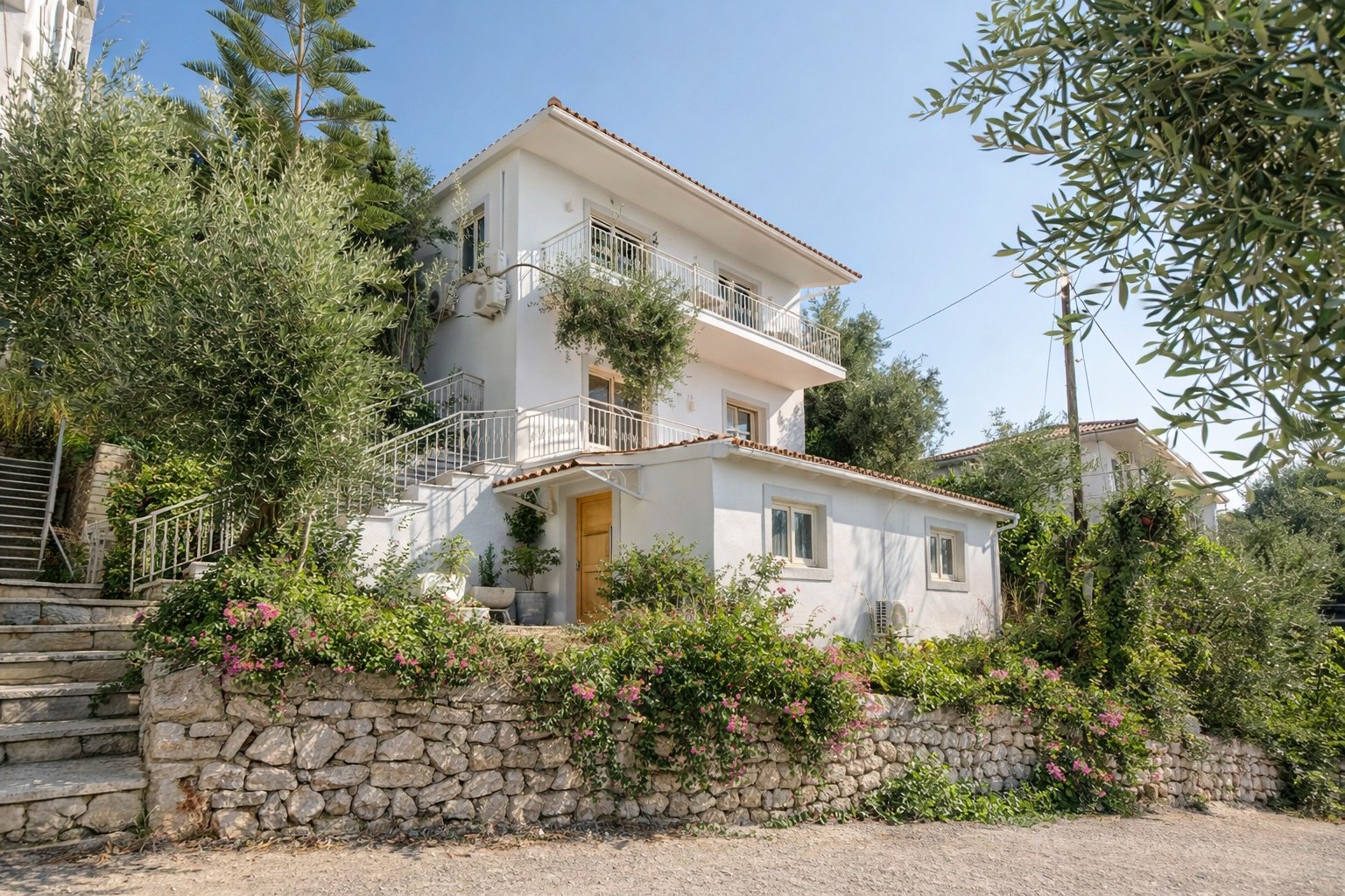 Das Gebäude umfasst drei vollständig möblierte Apartments, die jeweils komfortable Wohnbereiche und einen beeindruckenden Blick auf das Ionische Meer bieten.
